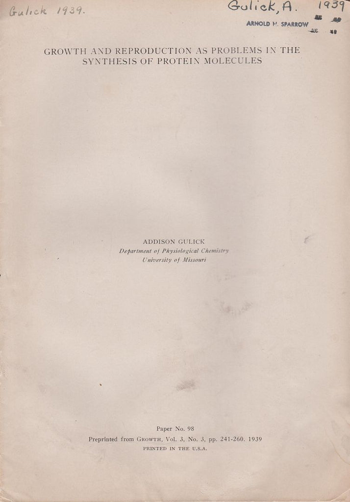 Title Growth and Reproduction as Problems in the Synthesis of Protein Molecules