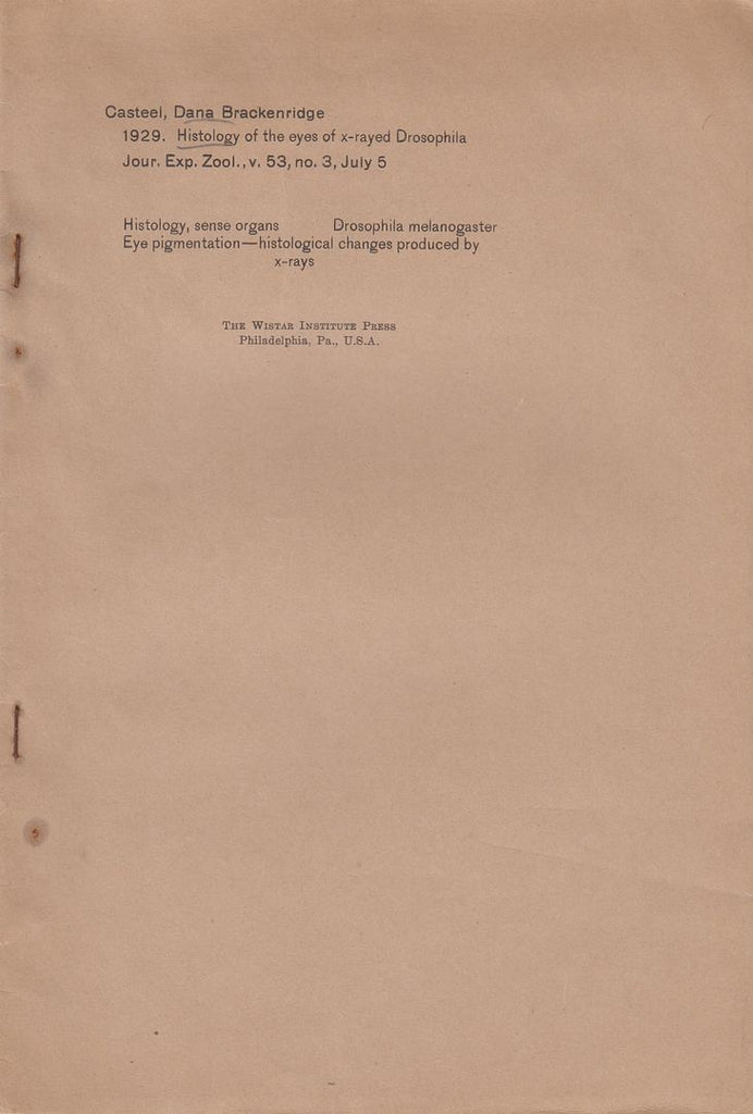 Very good condition. Reprinted from The Journal Of Experimental Zoology Vol. 53, No. 3, July, 1929, pp. 373-382. First edition. Offprint. Original wrappers.* |
