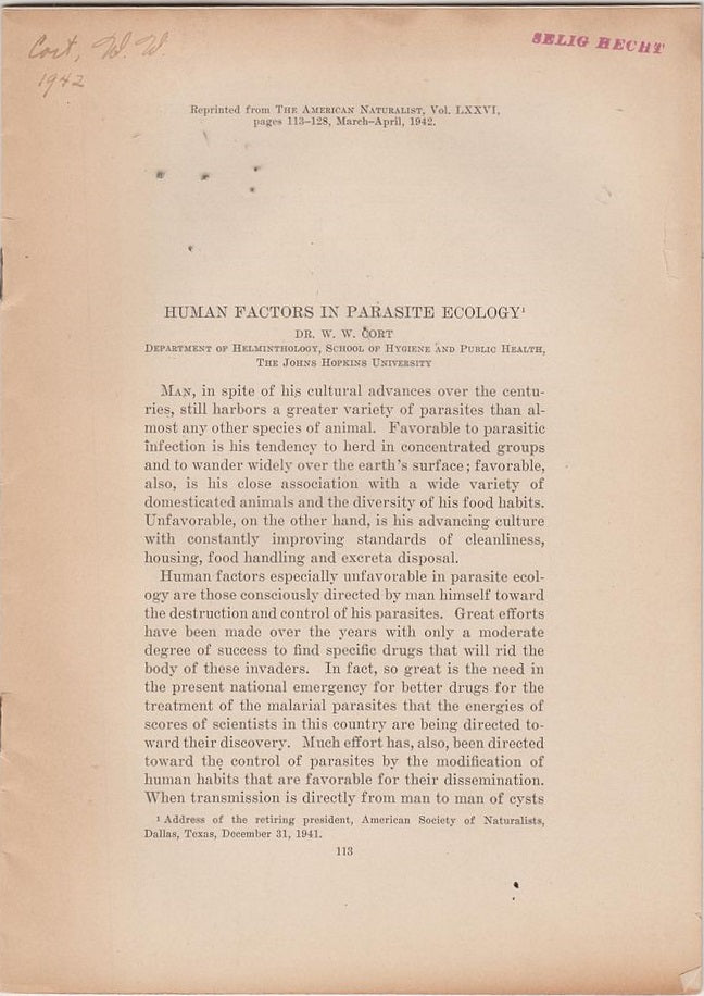 Reprinted from The American Naturalist Vol. LXXVI, 1942. Previous name stamp in ink. First separate edition. Offprint. Original wrappers.* |