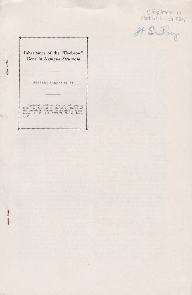 Very good condition. First edition. Offprint. Original wrappers. Compliments of the author stamp on front cover. Science. Biology. Genetics. Staples are rusted.* |