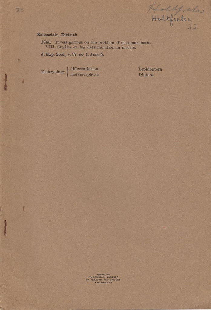 Title Investigations on the Problem of Metamorphosis. VIII. Studies on Leg Determination in Insects