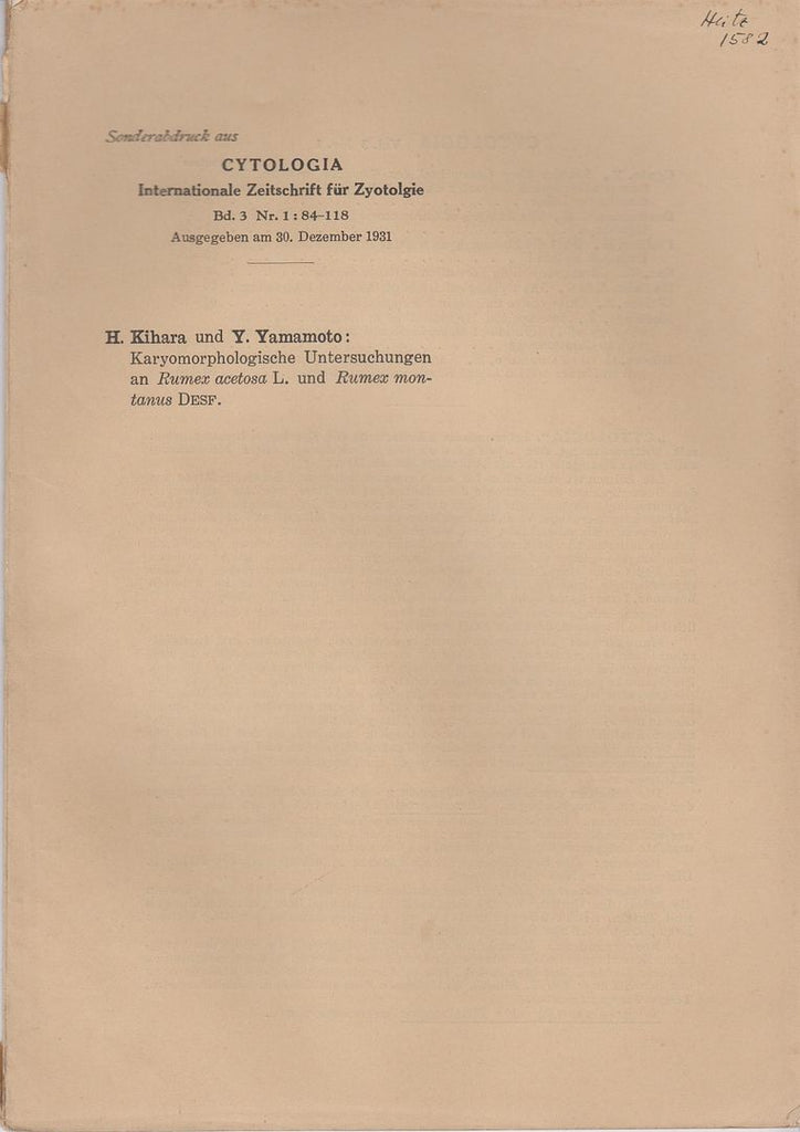 Cytologia Internationale Zeitschrift fur Zyotolgie, Vol. 3, No. 1, pp. 84-118, December 30 |