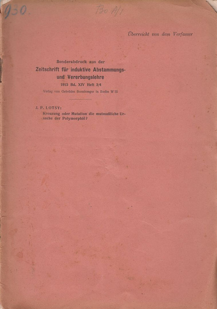 Publisher Zeitschrift fur Induktive Abstammungs und Vererbungslehre, Vol. XIV, No. 3/4, 1915, pp. 204-225