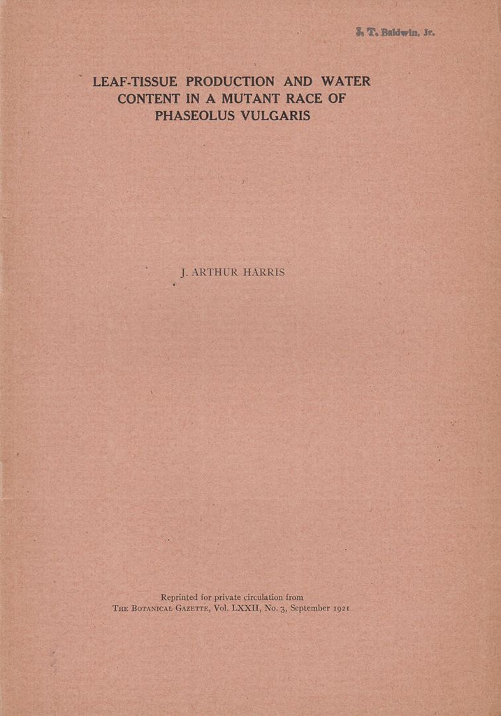 Very good condition. Name stamp of J.T. Baldwin, Jr. on front cover.* Botany. Science. First edition Offprint. |