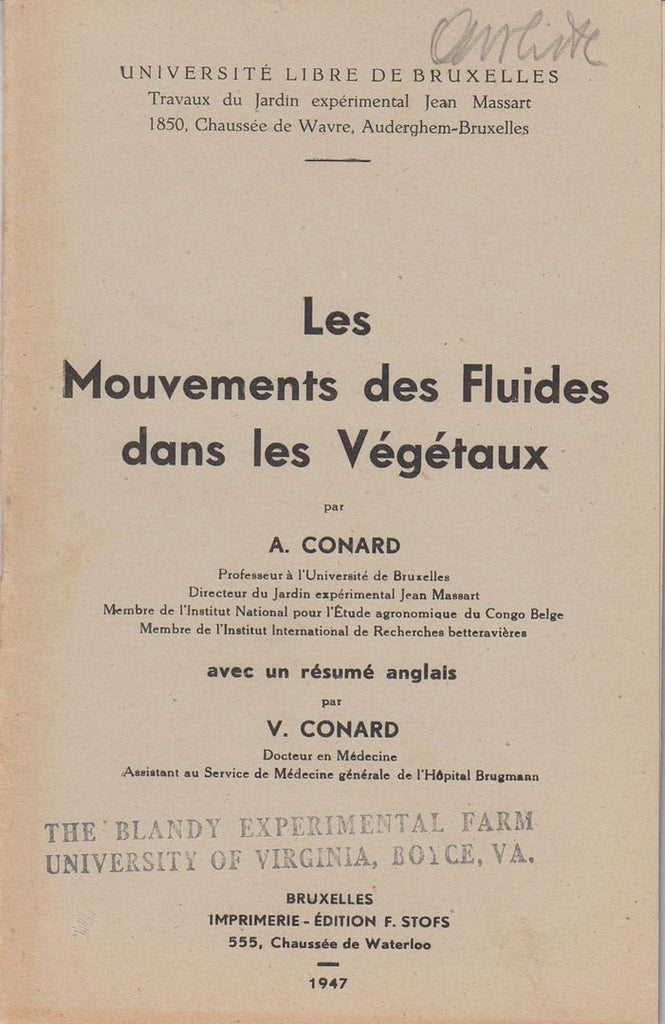 Very good condition. Universite Libre de Bruxelles, 1850, pp. 1-48. First edition. Offprint. Original wrappers. Stamp of Blandy Experimental Farm on front cover.* Science. Botany. Genetics. |
