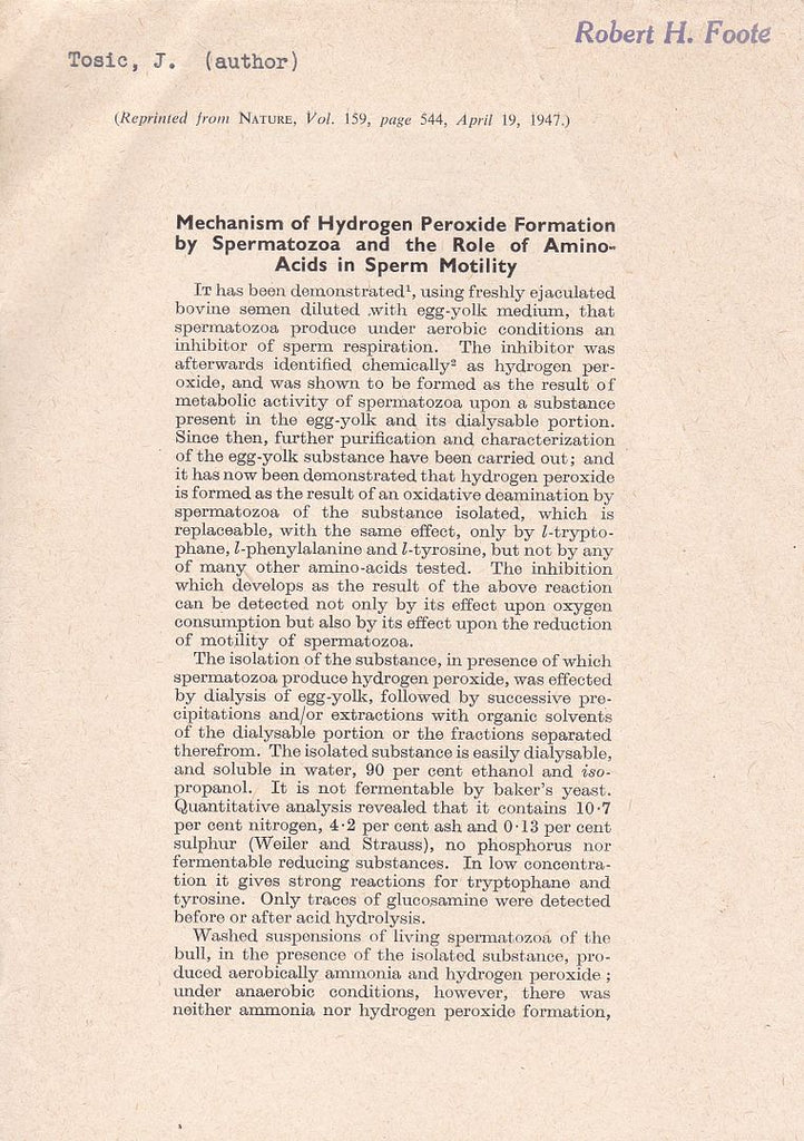 Title Mechanism of Hydrogen Peroxide Formation by Spermatoza and the Role of Amino Acids in Sperm Motility