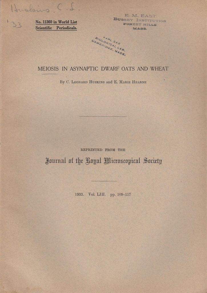 First edition. Offprint. Journal of the Royal Microscopical Society, Vol. LIII, 1933, pp. 109-117. Very good condition. Name stamp on front cover.* |