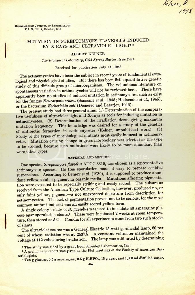 Title Mutation in Streptomyces Flaveolus Induced by X-Rays and Ultraviolet Light