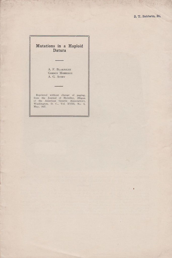 Very good condition. First separate edition. Offprint. Original wrappers. Ownership stamp of J.T. Baldwin, Jr. on front cover. Science. Genetics. Staples are rusted.* |