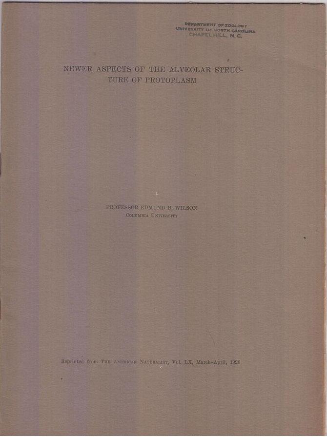 Reprinted from The American Naturalist, Vol. LX, March-April 1926. Ownership stamp of Department of Zoology UNC Chapel Hill. First separate edition. Offprint. Original wrappers. * |