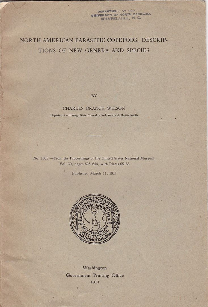 First separate edition. Offprint. Original wrappers. Department of Zoology stamp on front cover. Proceedings of the United States National Museum. 24 cm. v. 39, p. 625-634. |
