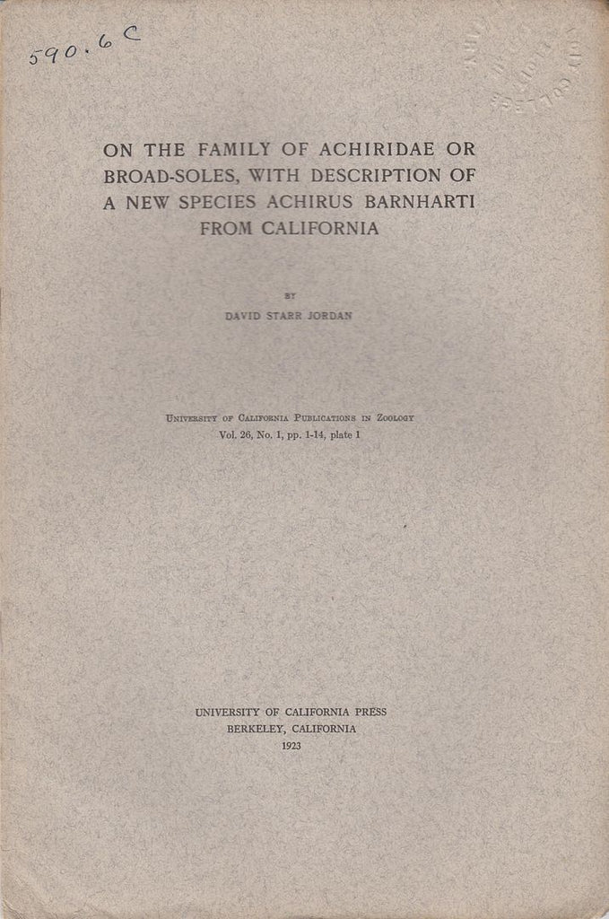 On the Family on Achiridae or Broad-Soles, with Description of a New Species Achirus Barnharti from California |