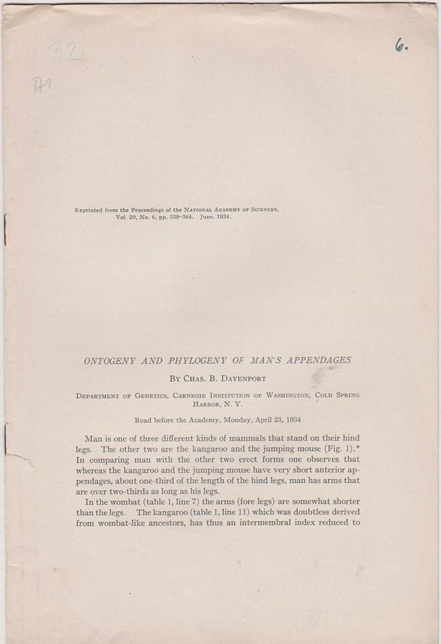 Description 1934. Reprinted from the Proceedings of the National Academy of Sciences, Vol. 20, No. 6, pp. 359-364. First separate edition. Offprint. Original wrappers. *