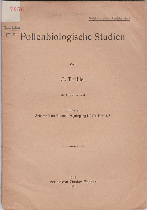 1917. Reprinted from Zeitschrift f?r Botanik, 9. Heft 7/8, p. 417-488. Ownership stamp: Lester W. Sharp. First separate edition. Offprint. Original wrappers.* |
