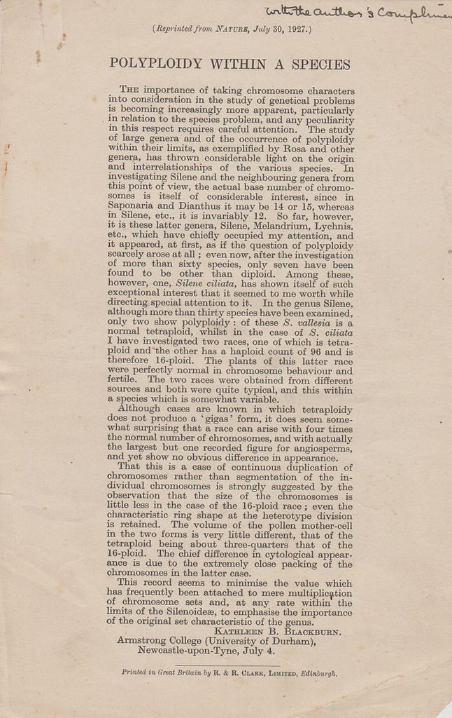 Very good condition. Nature, July 30, 1927. First edition. Offprint. Original wrappers. Science. Botany. Genetics.* |