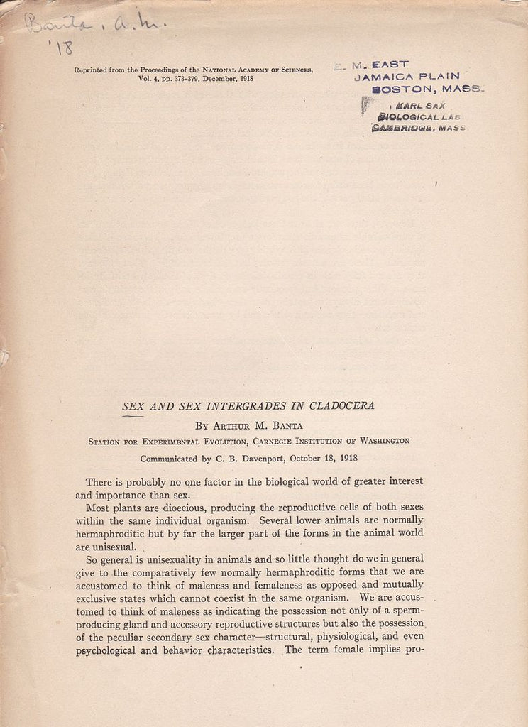 First separate edition. Offprint. Original wrappers. E. M. East stamp on front cover. Karal Sax stamp on front cover. |