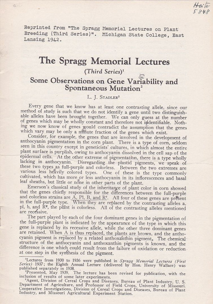 First separate edition. Offprint. Original wrappers. The Spargg Memorial Lectures. Michigan State College. |