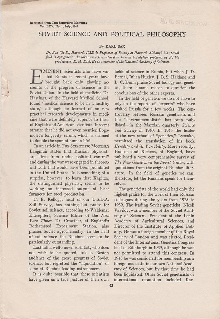 | Publisher | The Scientific Monthly, Vol. LXV, No. 1, July 1947, pp. 43-47 |