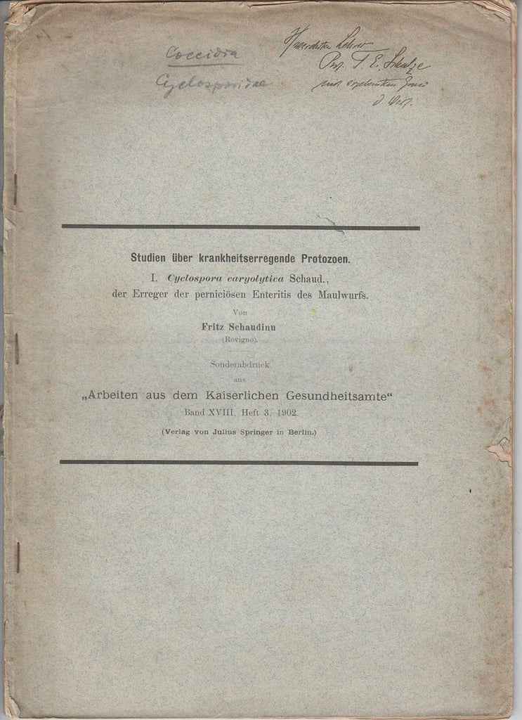 Studien über krankheitserregende Protozoen: I. Cyclospora caryolitica Shaud., der Erreger der perniciösen Enteritis des Maulwurfs |