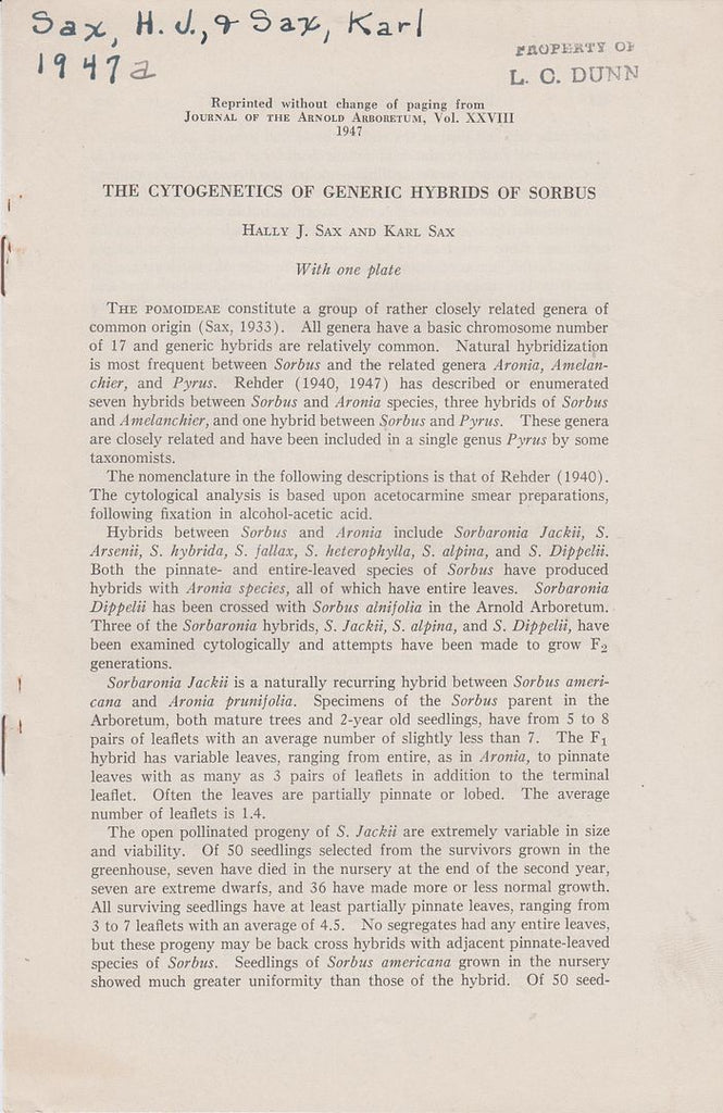 The Cytogenetics of Generic Hybrids of Sorbus |