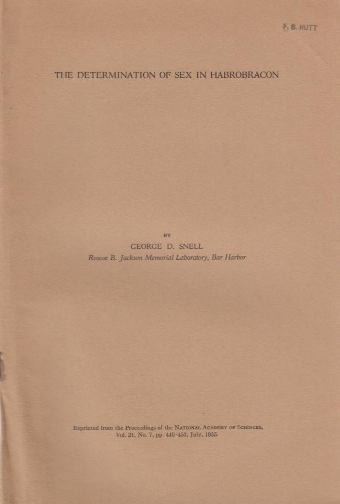 Very good condition. First separate edition. Offprint. Original wrappers. Ownership stamp on front cover.*"George Snell shared the 1980 Nobel Prize in Physiology or Medicine with Baruj Benacerraf and Jean Dausset for their discoveries concerning "genetically determined structures on the cell surface that regulate immunological reactions"." Wikipedia |