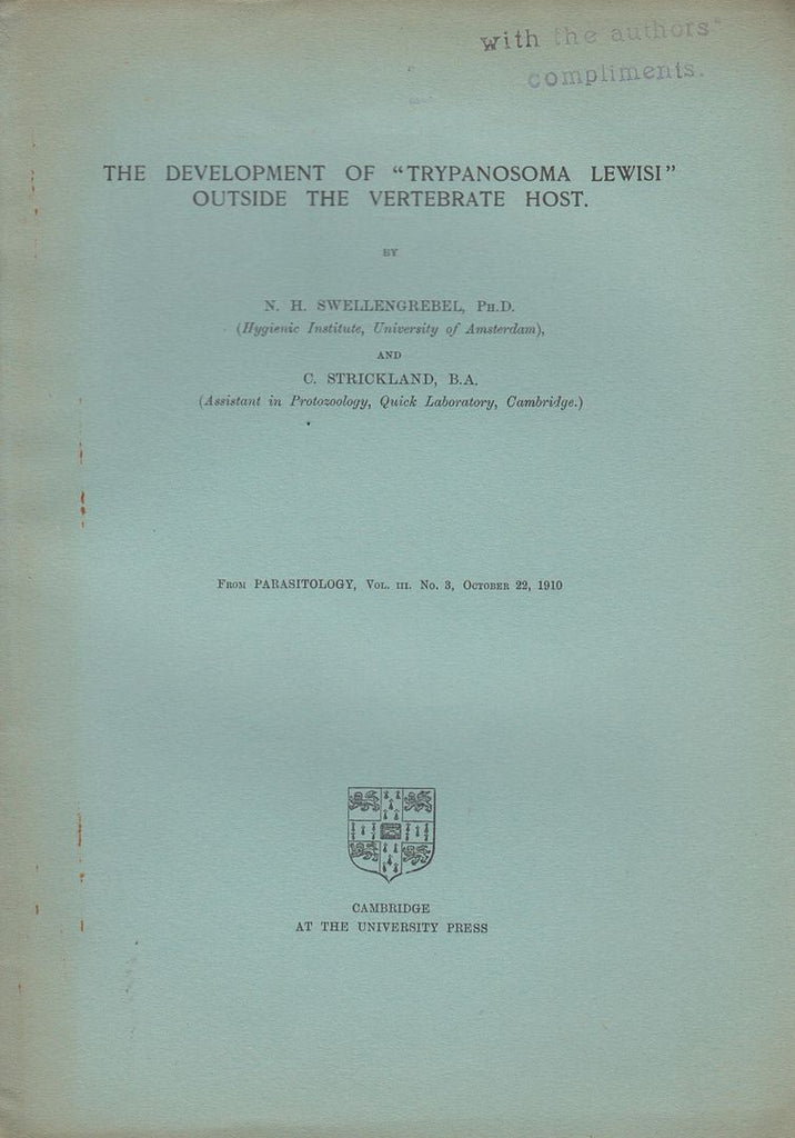 Parasitology, Vol. III, No. 3, October 22, 1910. Very good condition.* First edition. Offprint. Original wrappers. |