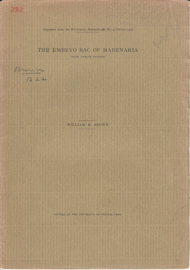 Description First edition. Offprint. Original wrappers. Reprinted from the Botanical Gazette 48: No. 4, October 1909. Writing front cover, edges little torn and chipped, discoloration rear cover else very good *