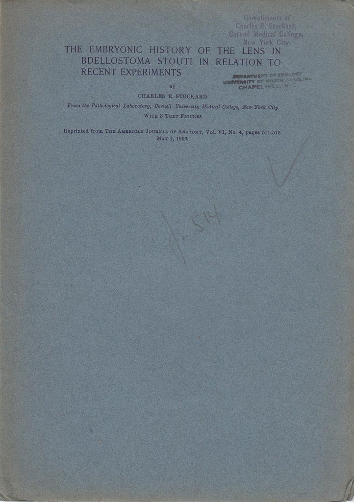 Description Very good condition. Institution stamp on front cover.* Embryology. Science. First edition. Offprint.