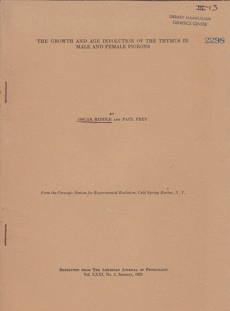 First separate edition. Offprint. Original wrappers. Library Mammalian Genetics center stamp on front cover. |