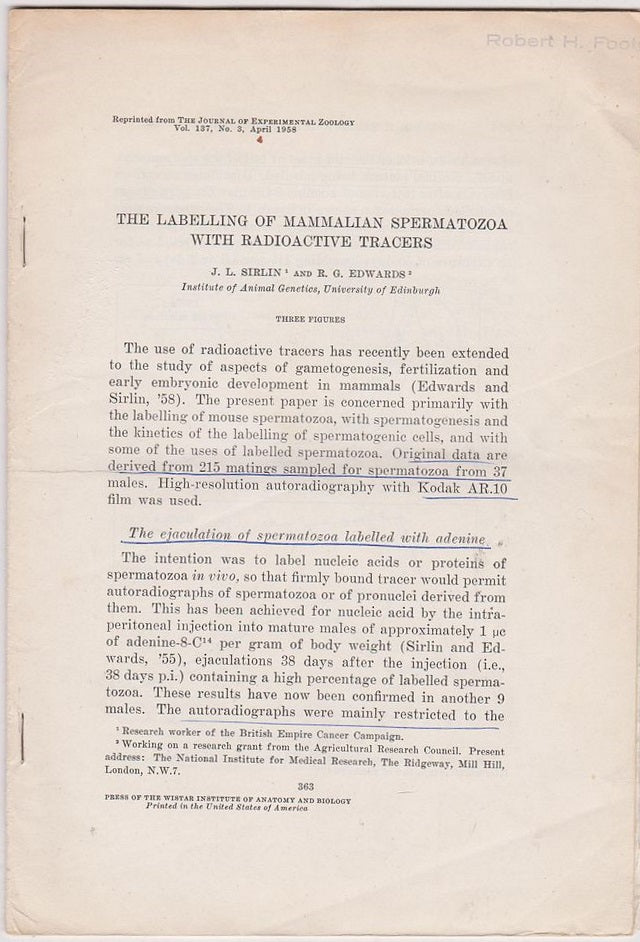 The labelling of mammalian spermatozoa with radioactive tracers |