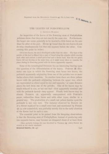 Description First edition. Offprint. Very good condition. Name stamp of J.T. Baldwin, Jr. on title page.* Pages uncut. Botany. Science. Antiquarian.