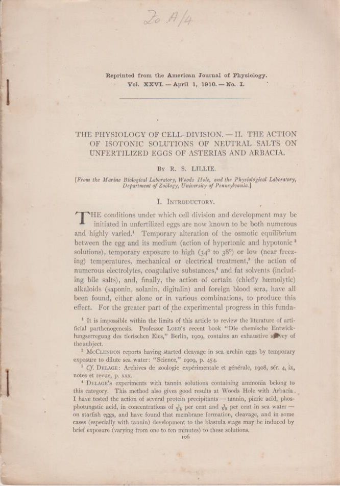 Title The Physiology of Cell-Division. II. The Action of Isotonic Solutions of Neutral Salts on Unfertilized Eggs of Asterias and Arbacia