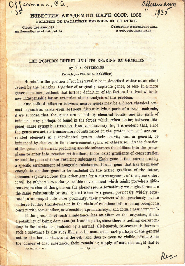 Title The Position Effect and its Bearing on Genetics