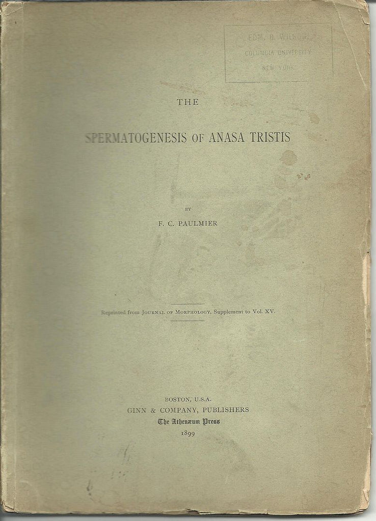 Reprinted from Journal of morphology, supplement to vol. xv.. 2 p. l., p. 223-272. illus., 2 fold. pl. 25 cm. Edmund B. Wilson stamp on front cover, some soiling to front wrapper, head and heal of spine chipped, edges a bit chipped. Biology. Evolution. Genetics. |