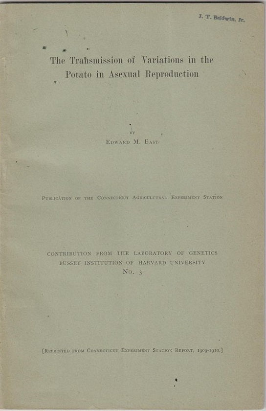 Reprinted from Connecticut Experiment Station Report 1909-1910. Previous name in ink of J.T. Baldwin Jr.First separate edition. Offprint. Original wrappers.* |