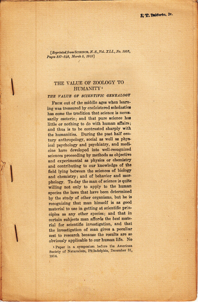 Description First edition. Offprint. Original wrappers. Reprinted from Science, N.S., Vol. XLI, No. 1053, Pages 337-342, March 5, 1915. Ownership stamp from J.T. Baldwin front cover, edges of pages little nicked else very good. *