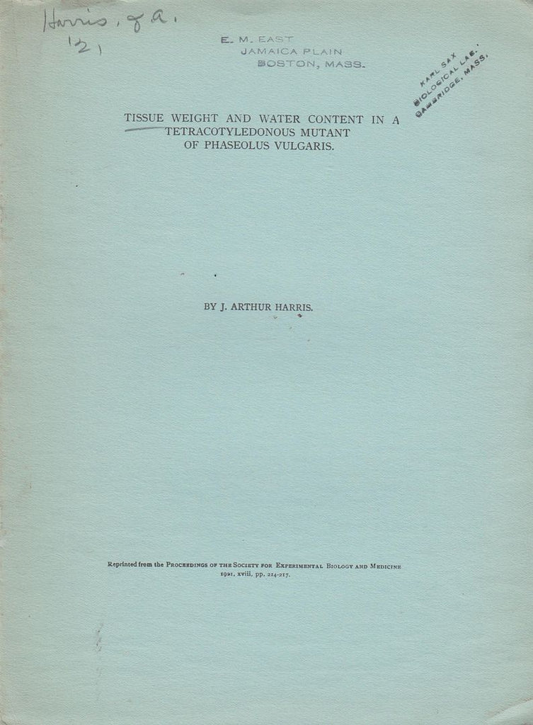 Very good condition. Name stamps of E.M. East and Karl Sax on front cover.* Biology. Science. |