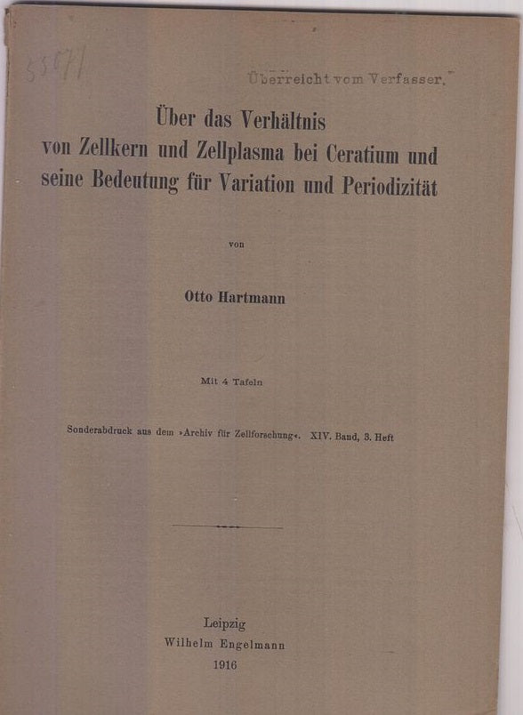 Uber das Verhaltnis von Zellkern und Zellplasma bei Ceratium und seine Bedeutung fur Variation und Periodizitat by Hartmann, Otto