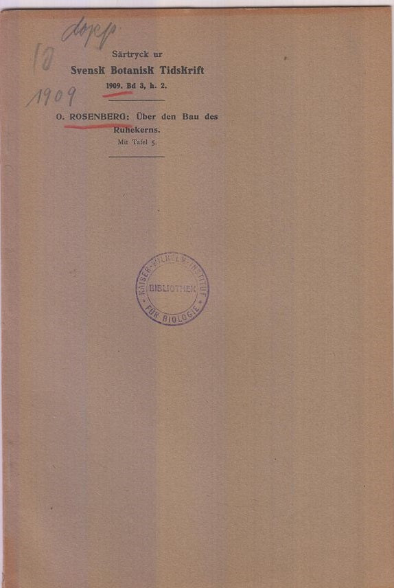 Reprinted from Svensk Botanisk Tidskrift, 1909, Bd 3, H 2. Stamp from Kaiser-Willhelm-Institut for Biologie. First separate edition. Offprint. Original wrappers. * |