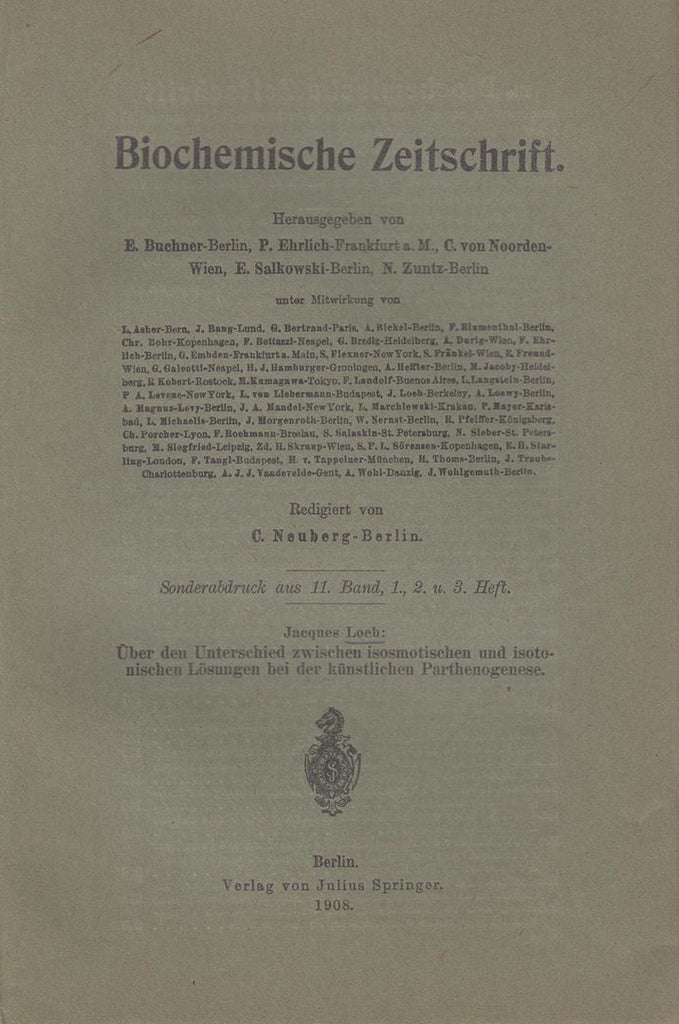 Uber den Unterschied zwischen isosmotischen und isotonischen Losungen bei der kunstlichen Parthenogenese