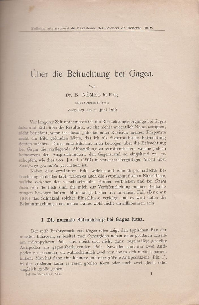 * Plant anatomist. Very good. Antiquarian science. Botany. Bull. Internat. Acad. Sci. Bohéme 19I2:1-I7. figs. 19. First edition. Offprint. |
