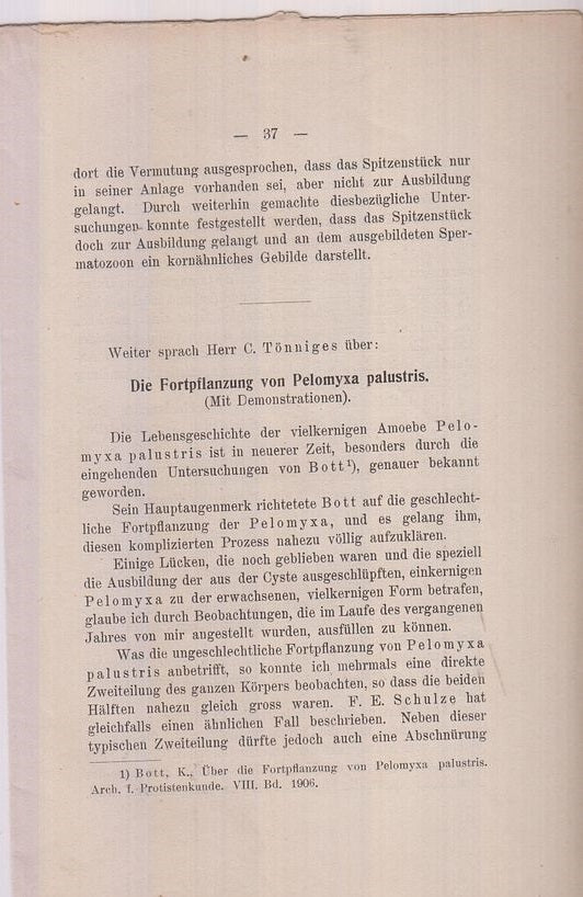 Uber Die Fortpflanzung von Pelomyxa palustris |