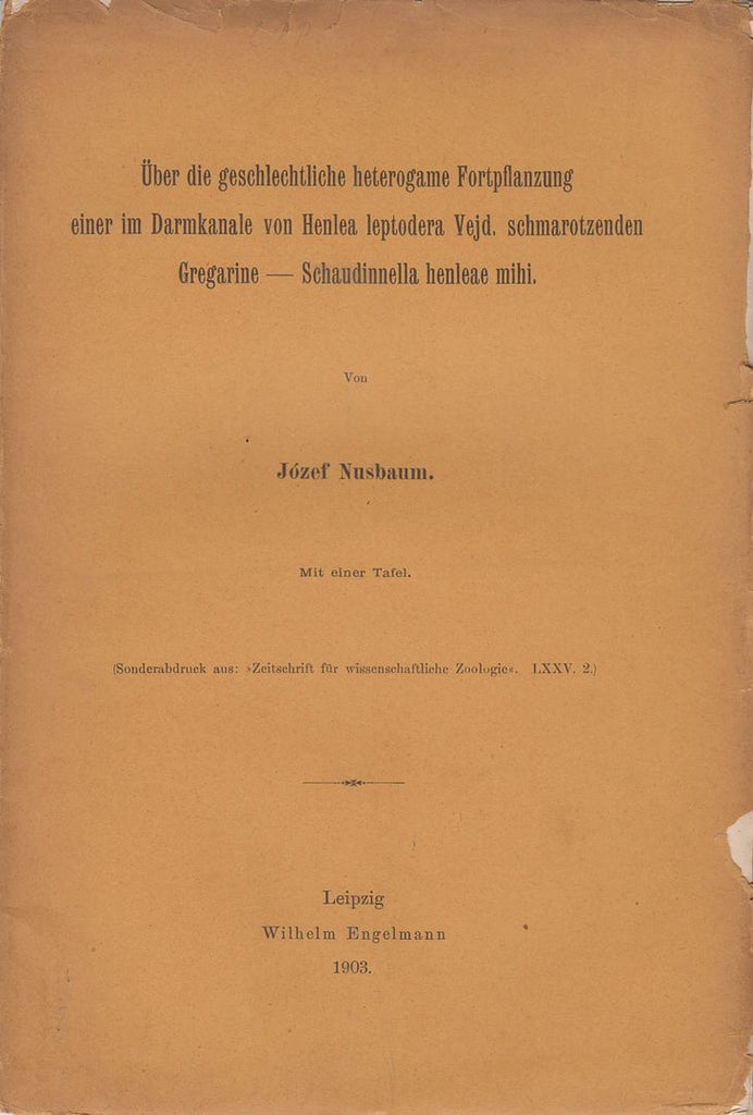 Title Uber die Geschlechtliche heterogame Fortpflanzung einer im Darmkanale von Henlea leptodera Vejd. schmarotzenden Gragarine--Schaudinnella henleae mihi