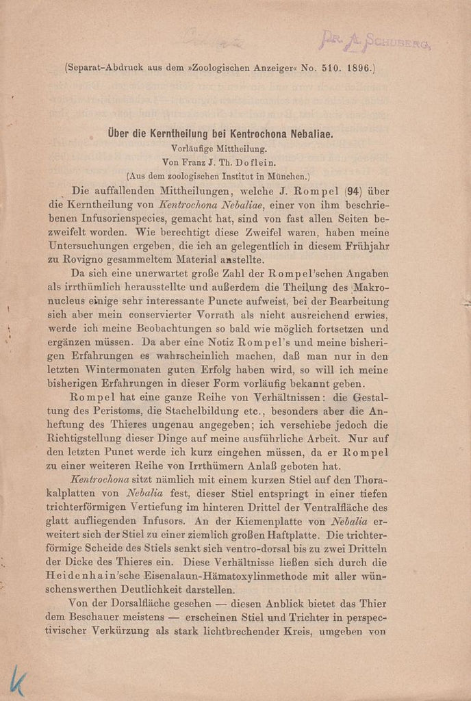 Uber die Kerntheilung bei Kentrochona Nebaliae |
