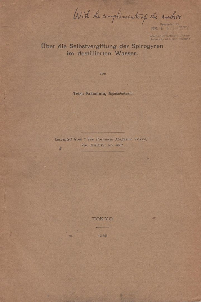 Description First edition. Offprint. Very good condition. Name stamp of Dr. E.N. Harvey on front cover.* Botany. Science. "With the compliments of the author" in ink front cover.