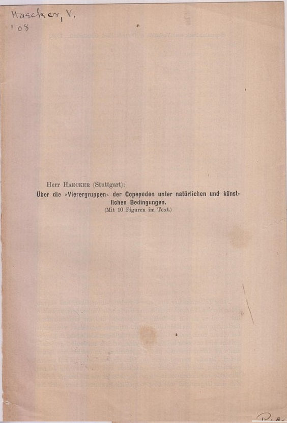 Reprinted from Verhandlungen der Deutschen Zoologischen Gesellschaft, 1908. First separate edition. Offprint. Original wrappers. * |