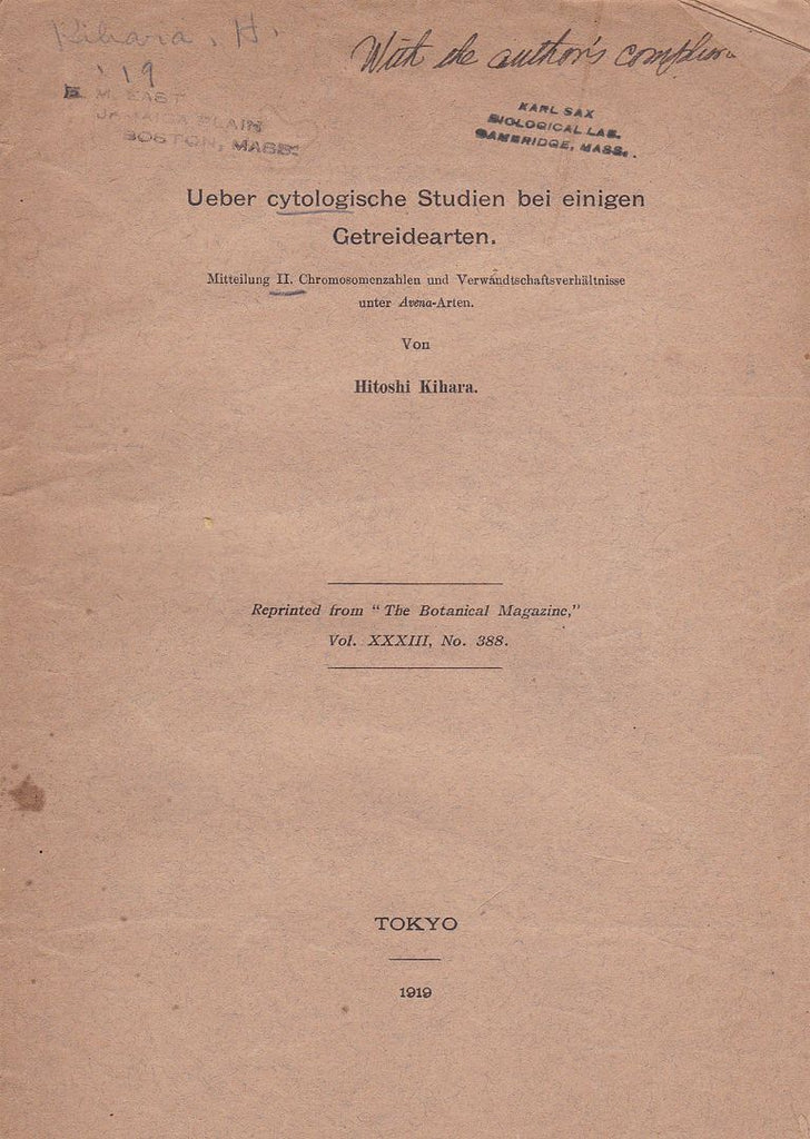 Title Ueber Cytologische studien Bei Einigen Getreidearten Mitteilung II. Chromosomenzahlen and Verwandtschaftsverhaltnisse