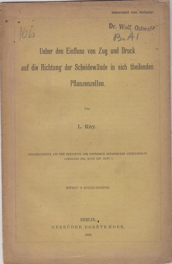 Ueber den Einfluss von Zug und Druck auf die Richtung der Scheidewandein Sich Theilenden Pflanzenzellen |