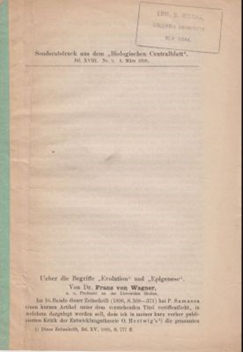 Title Ueber die Begriffe "Evolution" und "Epigenese"