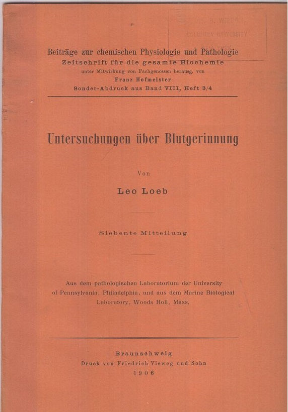 Beitrage Zur Chemischen Physiologie und Pathologie. Band VIII, Heft ? First separate edition. Offprint. Original wrappers. * |